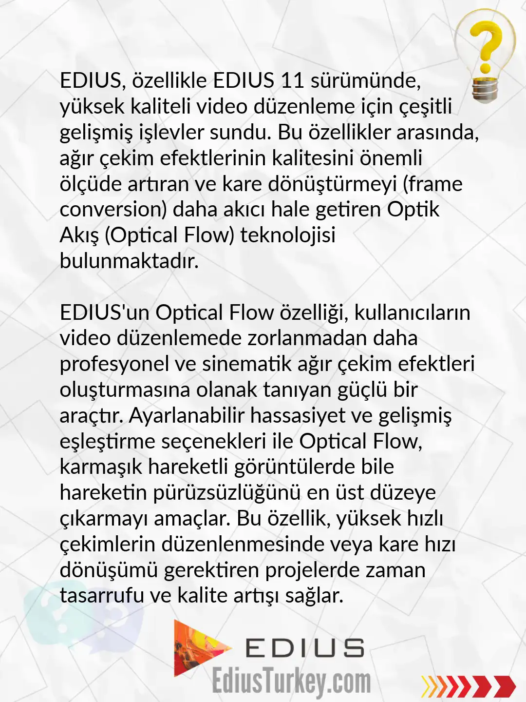 EDIUS 11’le beraber hediye olarak Vistitle yazı plugininin özel EDIUS sürümü “Vistitle Express” geliyor. Profesyonel başlık ve altyazılar oluşturabileceğiniz Vistitle yazı plugini, 700’den fazla hazır şablonla gelir. Haber kjleri, isim kjleri, roll captionlar, sosyal medya grafikleri, spor dalları için hazır grafikler, 3 boyutlu grafikler, reklam pazarlama grafikleri vb daha birçok sabit ve animasyonlu hazır şablonlar. Sadece sürükle ve bırak, hemen yayına hazır.